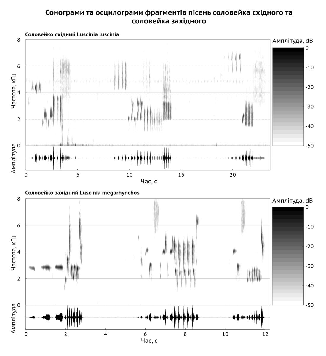“Sonogram of Luscinia luscinia vs Luscinia megarhynchos, by Yu Moskalenko, licensed under CC BY-SA 4.0”